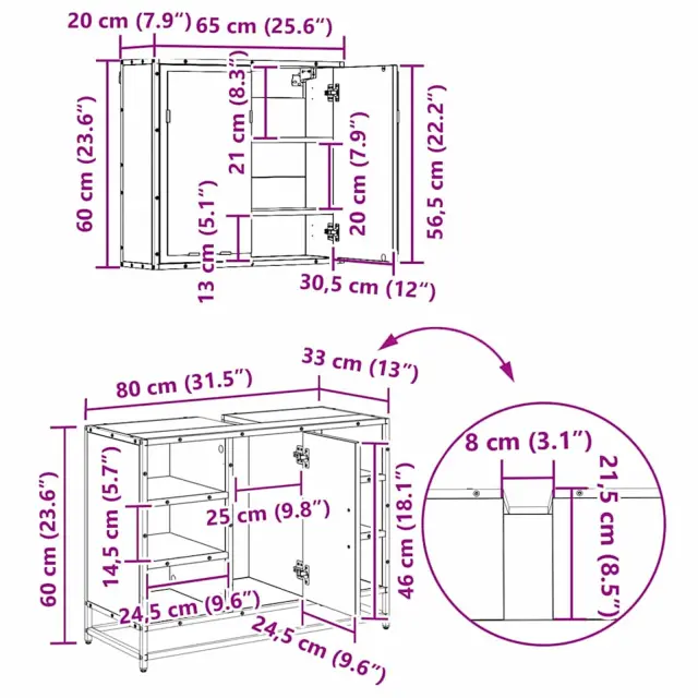 vidaXL Komplet pohištva za kopalnico s predalom 3 pcs Umetni hrast
