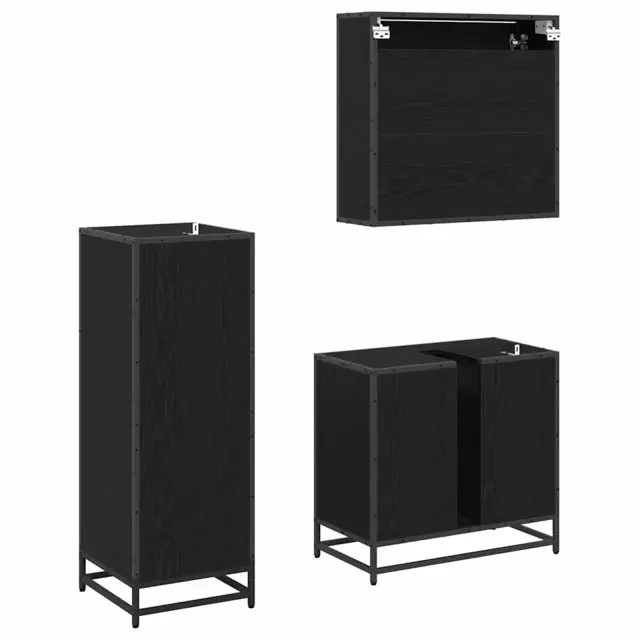 vidaXL Komplet pohištva za kopalnico s predalom 3 pcs Črna Orehovina