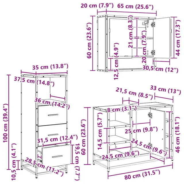 vidaXL Komplet pohištva za kopalnico s predalom 3 pcs Umetni hrast