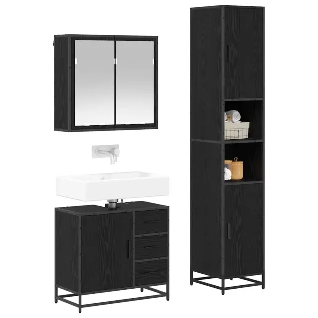 vidaXL Komplet pohištva za kopalnico s predalom 3 pcs Črna Orehovina