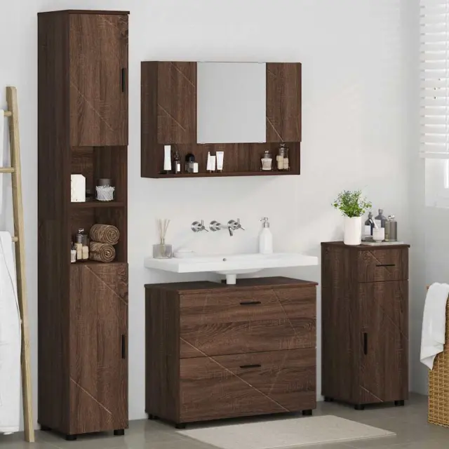 vidaXL Komplet pohištva za kopalnico s predalom 4 pcs Rjavi hrast