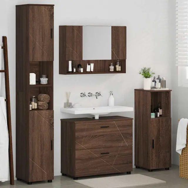 vidaXL Komplet pohištva za kopalnico s predalom 4 pcs Rjavi hrast