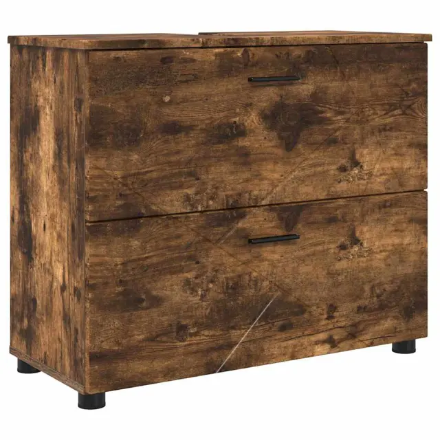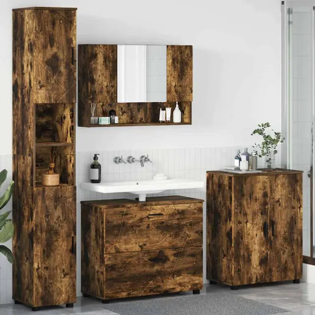 vidaXL Komplet pohištva za kopalnico s predalom 4 pcs Dimljeni hrast
