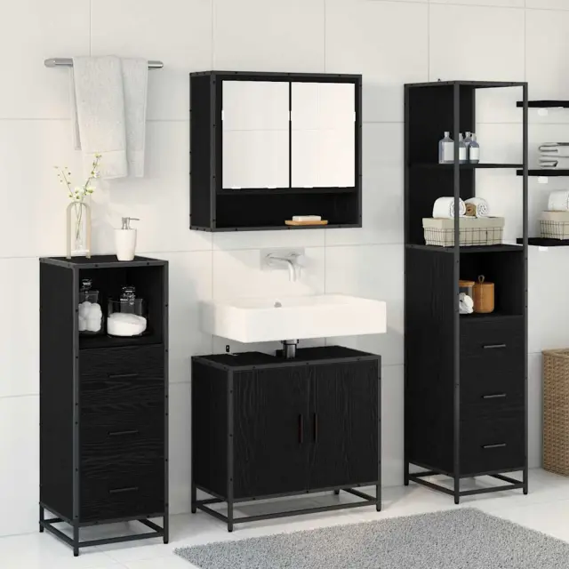 vidaXL Komplet pohištva za kopalnico s predalom 4 pcs Črna Orehovina