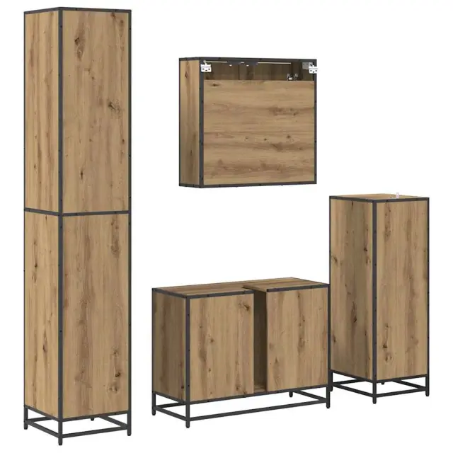 Komplet lesene kopalniške opreme prinaša moderno obliko, ki osveži vašo kopalnico. Ima eleganten, minimalističen izgled, ki se super ujema s sodobnim slogom. Vsak kos je zasnovan za funkcionalnost in izgleda zelo elegantno. Njegov harmoničen videz združuje praktičnost in stil, kar je nujno za vsakogar, ki uživa v organiziranem in privlačnem prostoru.