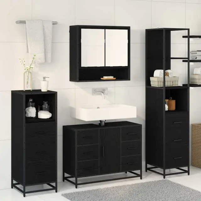 vidaXL Komplet pohištva za kopalnico s predalom 4 pcs Črna Orehovina