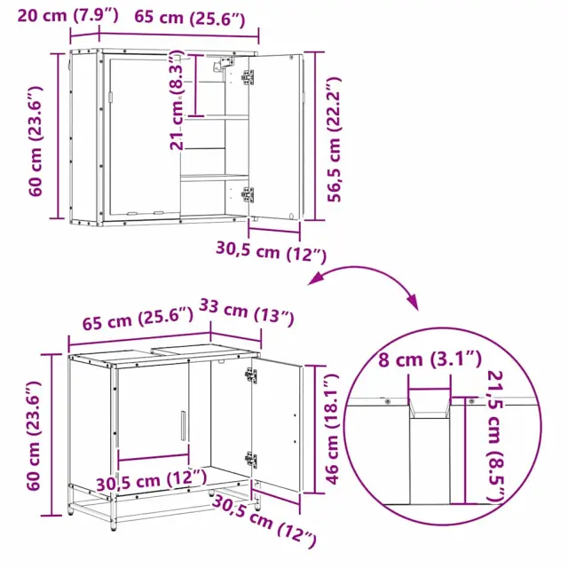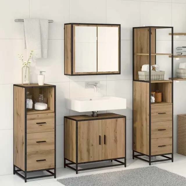 vidaXL Komplet pohištva za kopalnico s predalom 4 pcs Umetni hrast