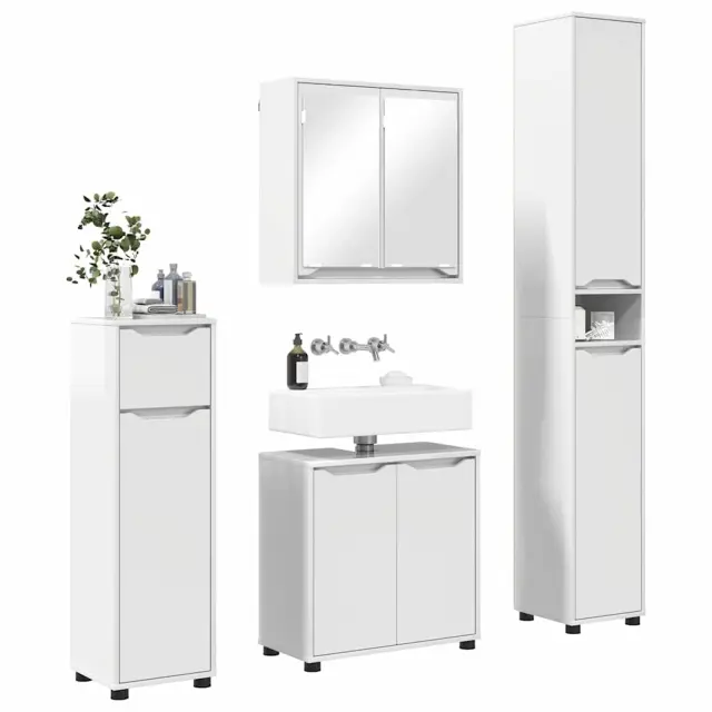 vidaXL Komplet pohištva za kopalnico s predalom 4 pcs Visok sijaj bela