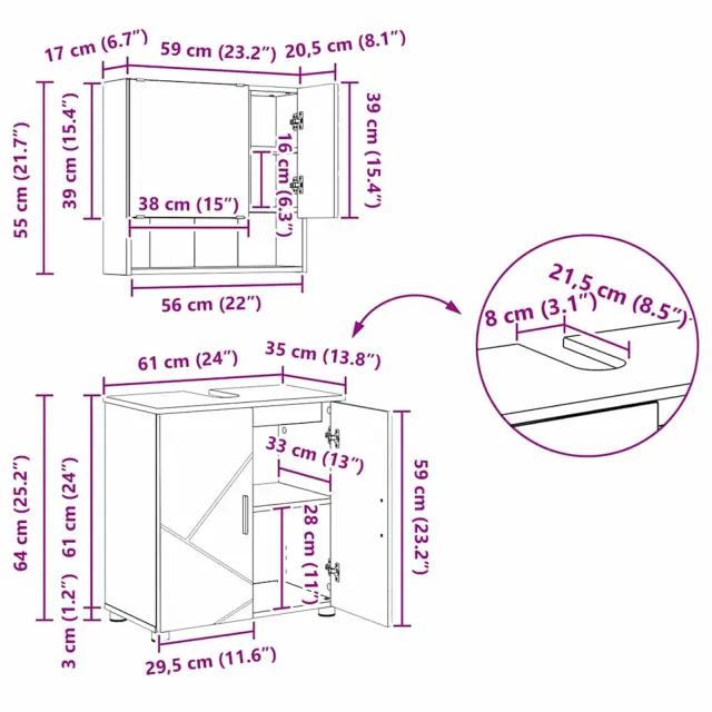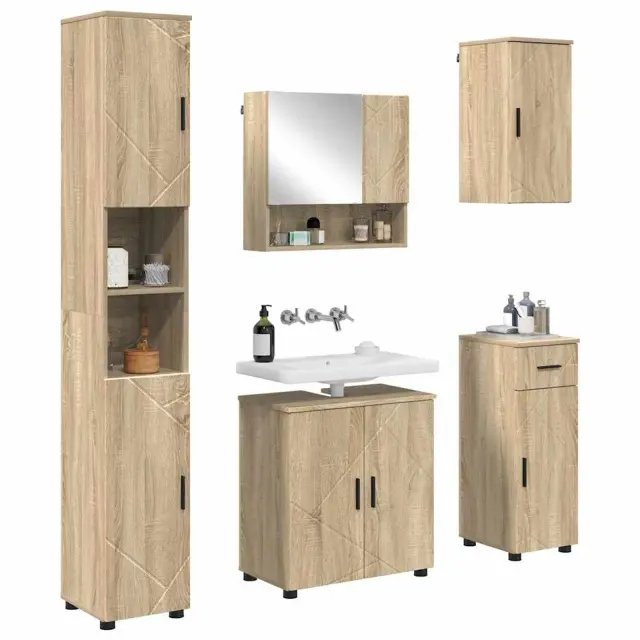 vidaXL Komplet pohištva za kopalnico s predalom 5 pcs sonoma hrast