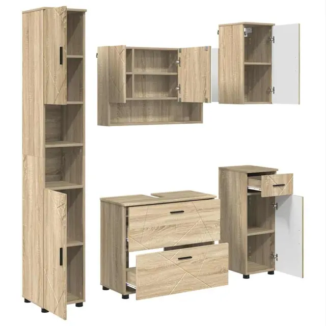 vidaXL Komplet pohištva za kopalnico s predalom 5 pcs sonoma hrast