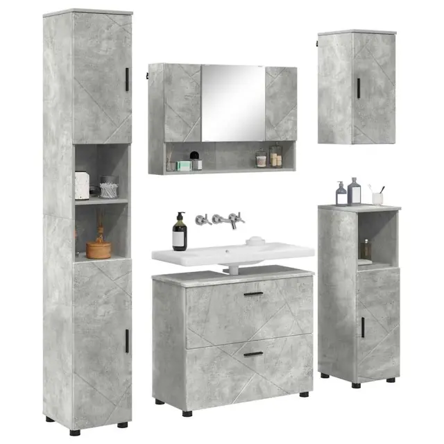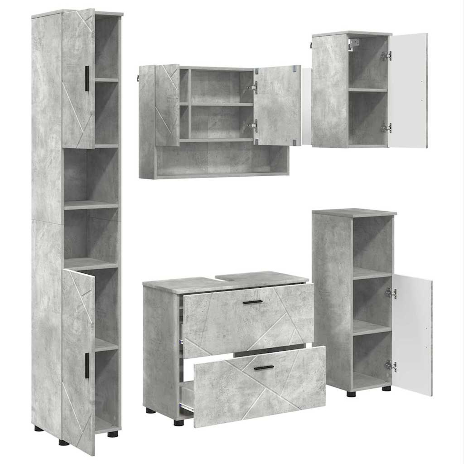 vidaXL Komplet pohištva za kopalnico s predalom 5 pcs Betonsko siva