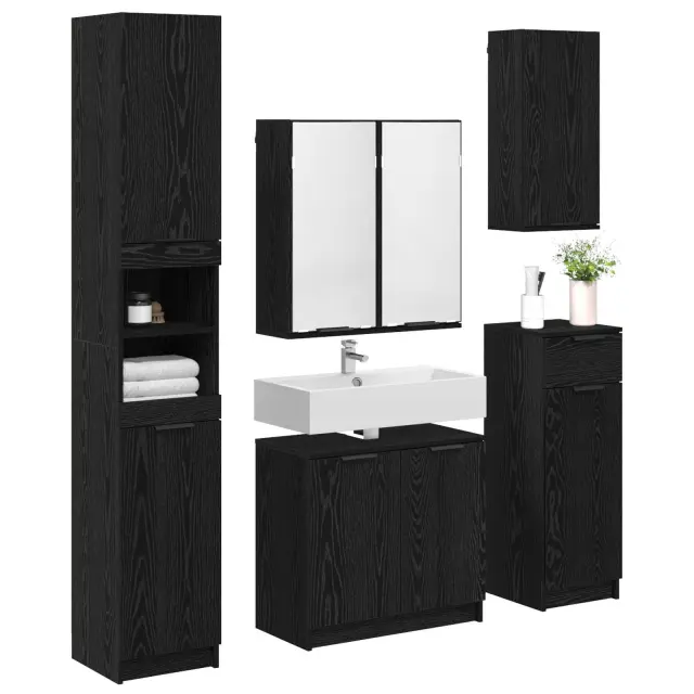 vidaXL Komplet pohištva za kopalnico s predalom 5 pcs Črna Orehovina