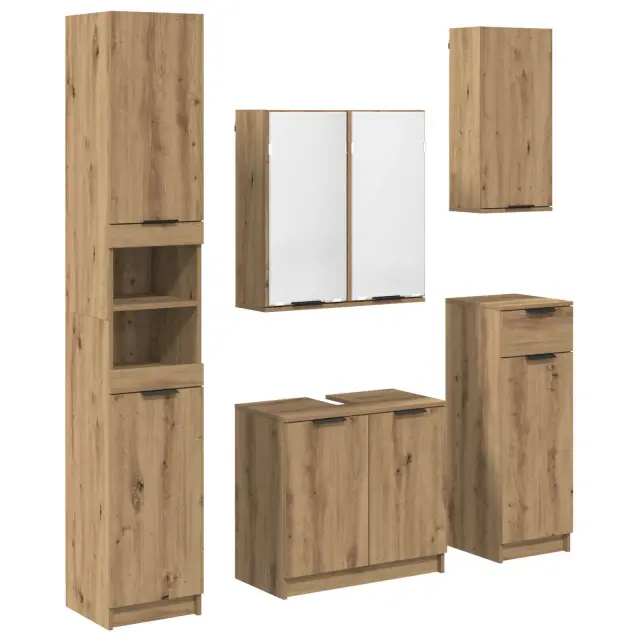 vidaXL Komplet pohištva za kopalnico s predalom 5 pcs Umetni hrast