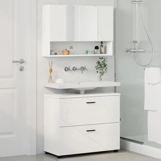 vidaXL Komplet pohištva za kopalnico s predalom s polico 2 pcs Bela