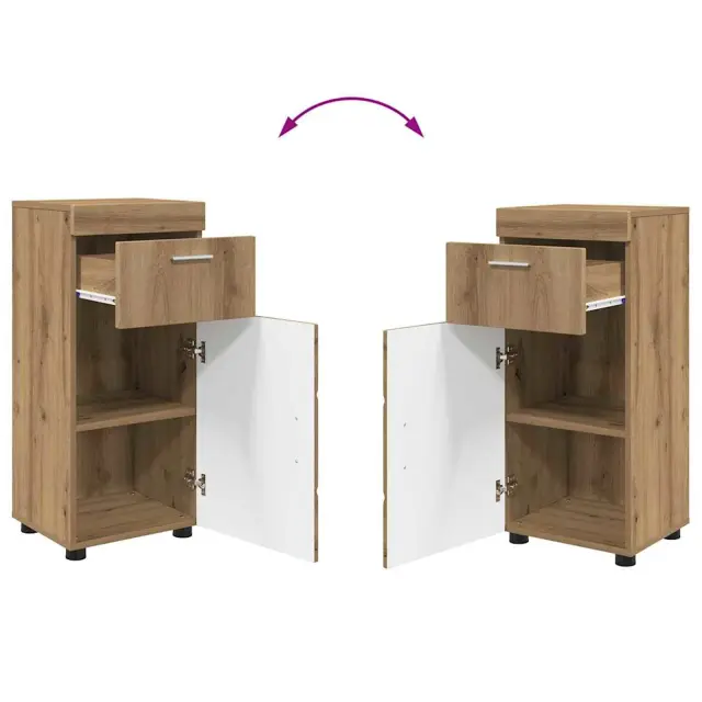 Ta sodoben set kopalniških omaric prinaša eleganten in čist videz v vsak prostor. Zasnovan je za funkcionalnost in še bolj za slog z inženirskim lesom za trdnost. Idealno se prilega različnim okoljem, saj nudi dovolj prostora za shranjevanje ključnih stvari. Gladka tekstura in mat zaključek dodata pridih elegance ter se lepo vključita v vsako kopalnico.