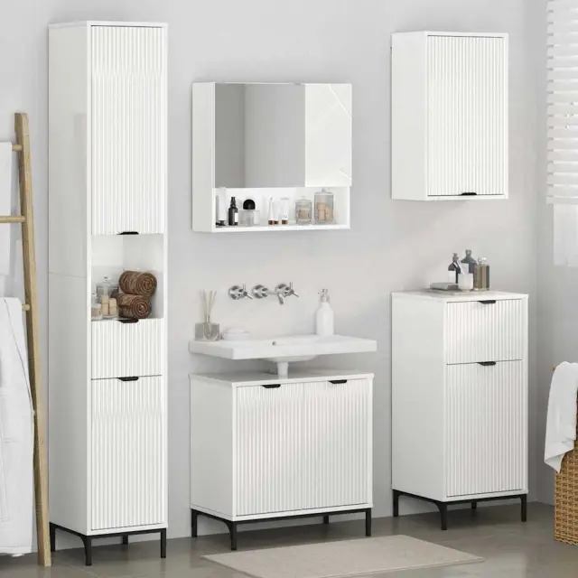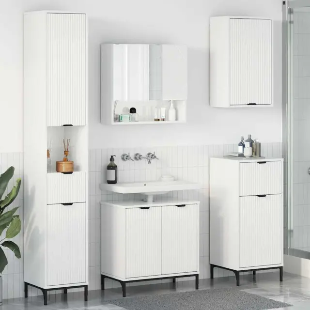 vidaXL Komplet pohištva za kopalnico s predalom Visok sijaj bela