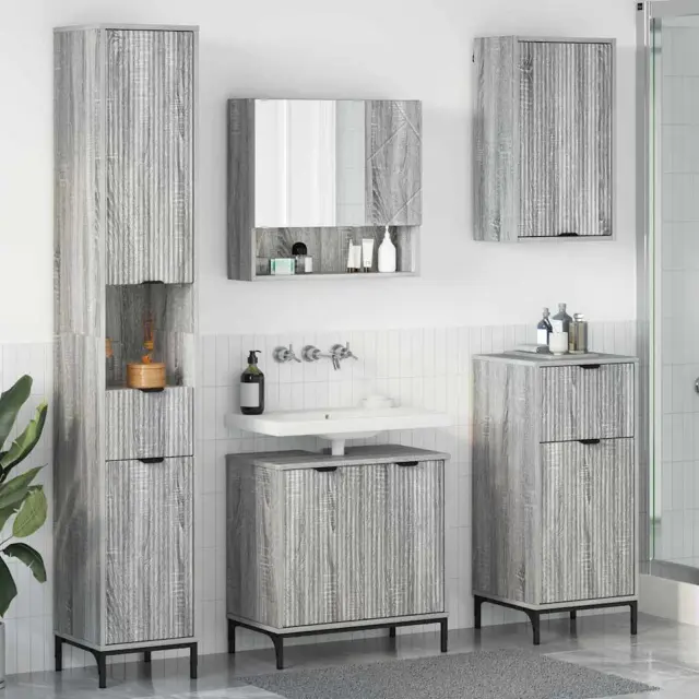 vidaXL Komplet pohištva za kopalnico s predalom z vrati Siva Sonoma