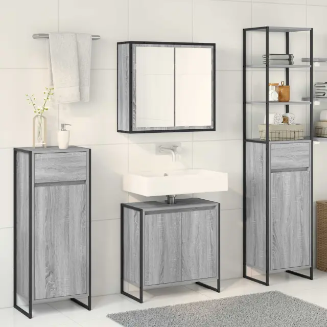 vidaXL Komplet pohištva za kopalnico Siva Sonoma Konstruiran les