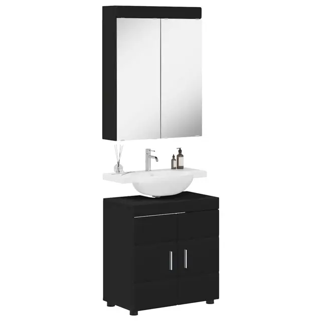 vidaXL Komplet pohištva za kopalnico TULUM Črna Konstruiran les