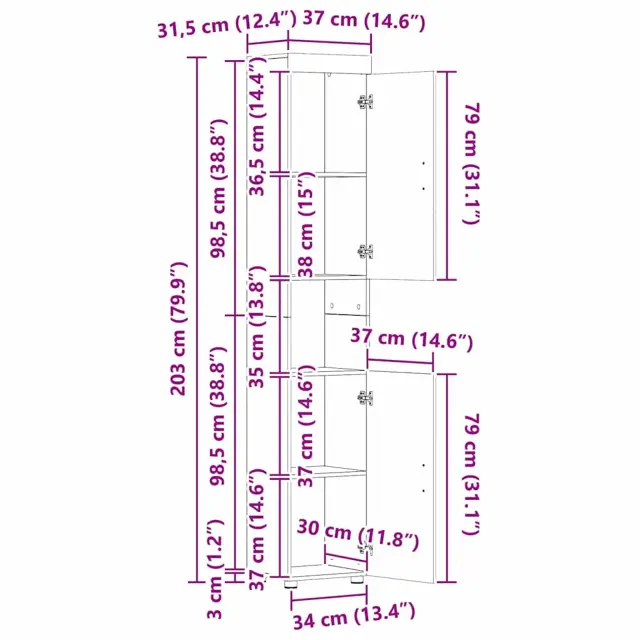 • 1 x omara (34 x 31,5 x 203 cm)