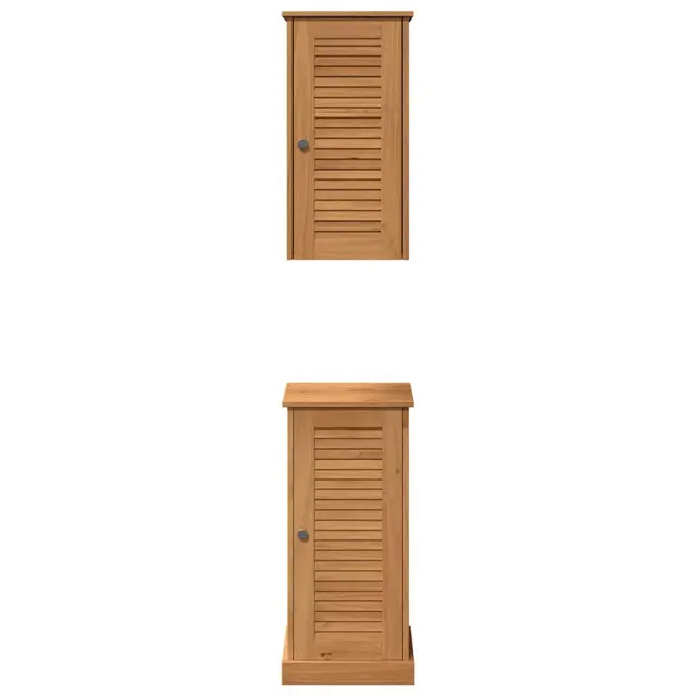 Ta rustikalen set kopalniškega pohištva prinaša pravo ravnovesje med lepoto in funkcionalnostjo ter vsakemu prostoru doda čar. Robustna in naravna estetika zadostuje tako estetskim kot praktičnim potrebam. Idealno za lastnike hiš in najemnike, saj omogoča eleganten način shranjevanja kopalniških potrebščin. Oblikovan je tako, da izraža ljubezen do narave in ponuja uporabnost brez žrtvovanja sloga.