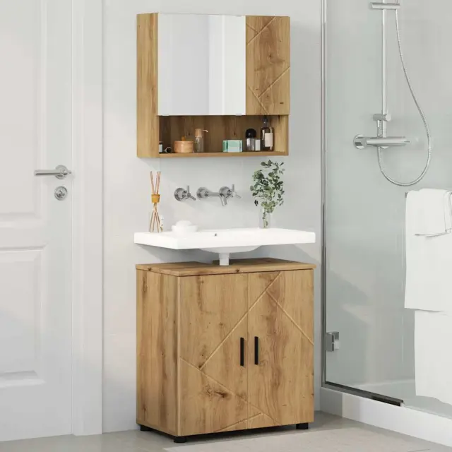 vidaXL Komplet pohištva za kopalnico z vrati 2 pcs Umetni hrast
