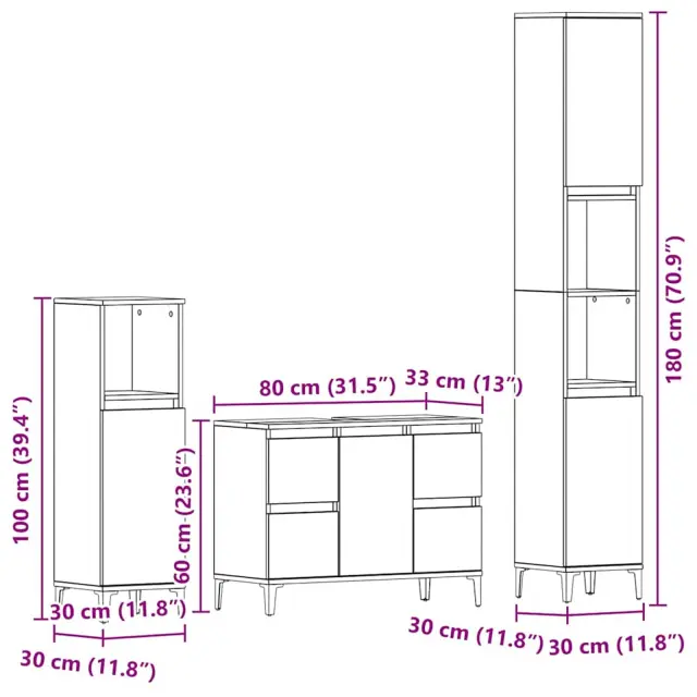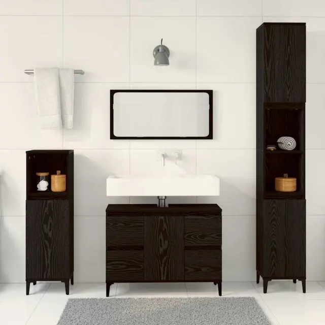Ta sodoben kopalniški set iz inženirskega lesa je idealna izbira za minimalistične prostore. S poudarkom na čistih linijah in praktičnem dizajnu prinaša kanček sofisticiranosti v vašo kopalnico. Komplet se brez težav prilega sodobnemu okolju, kar ga dela odlično izbiro za vse, ki cenijo estetski videz brez nered.
