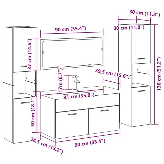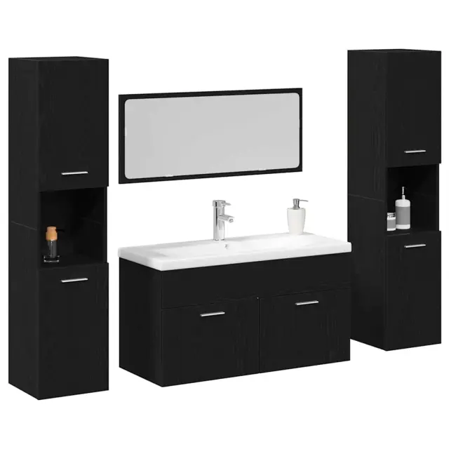 vidaXL Komplet pohištva za kopalnico z vrati 4 pcs Črna Orehovina