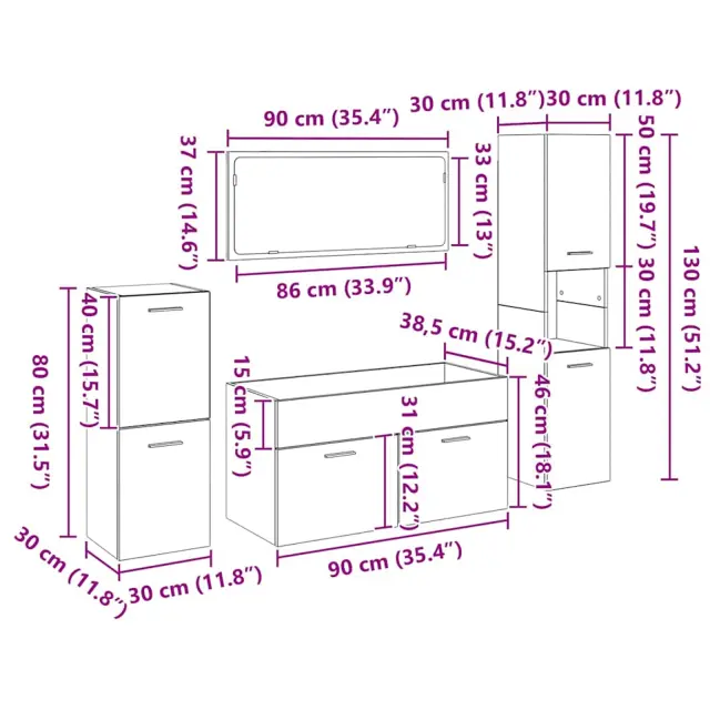 Ta sodoben set kopalniškega pohištva doda elegantno in funkcionalno noto vsaki kopalnici. Njegove čiste linije in sleek videz ponujajo moderen občutek, idealen za tiste, ki iščejo stiliziran in urejen prostor. Popoln je za posameznike in družine, ki si želijo pridih rafinirane estetike. Ne glede na to, ali prenavljate kopalnico ali jo želite le izboljšati, ta set vam ponuja vse, kar potrebujete v usklajenem dizajnu.