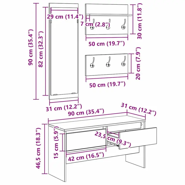 Ta moderne hodniški komplet ponuja nov način organizacije in stila za vaš vstopni prostor. Ima eleganten in minimalističen izgled, ki se dobro ujema s sodobnimi notranjostmi. Komplet vključuje klop za shranjevanje, ogledalo in obešalnike, zasnovane za učinkovito izrabo prostora. S čistimi linijami in funkcionalno zasnovo ponuja prostoren in stiliziran vstopni prostor, kar je super za lastnike, ki želijo ohranjati čist in privlačen videz v svojem domu.