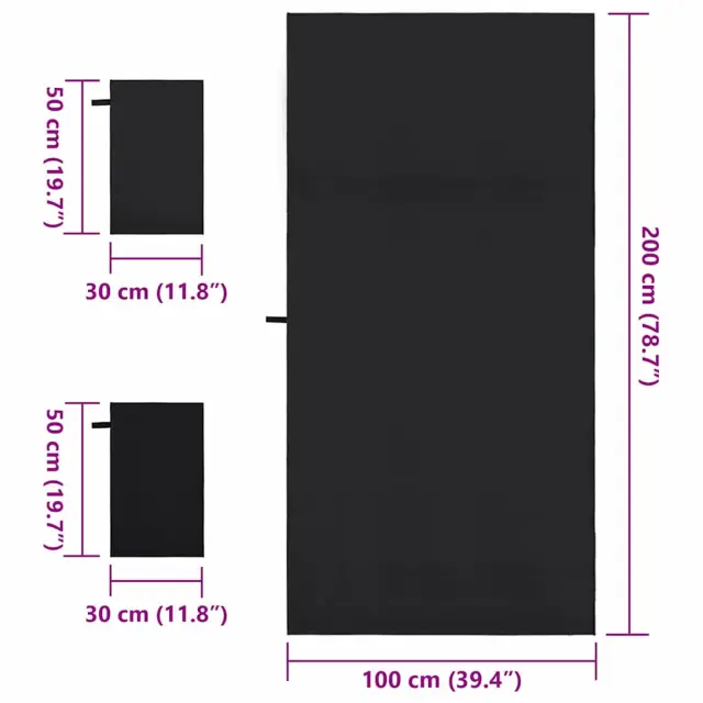 vidaXL Komplet športnih brisač 3 pcs Črna Poliester in poliamid