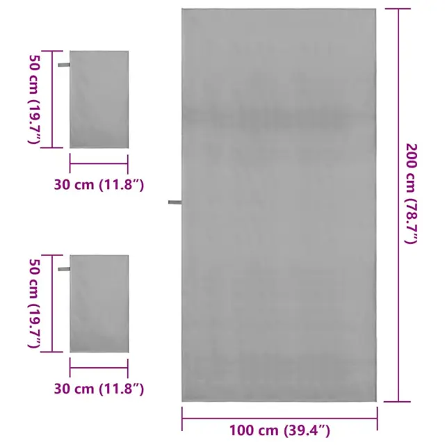 vidaXL Komplet športnih brisač 3 pcs Temno siva Poliester in poliamid