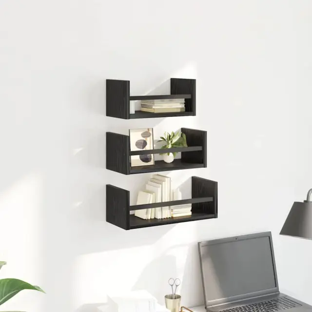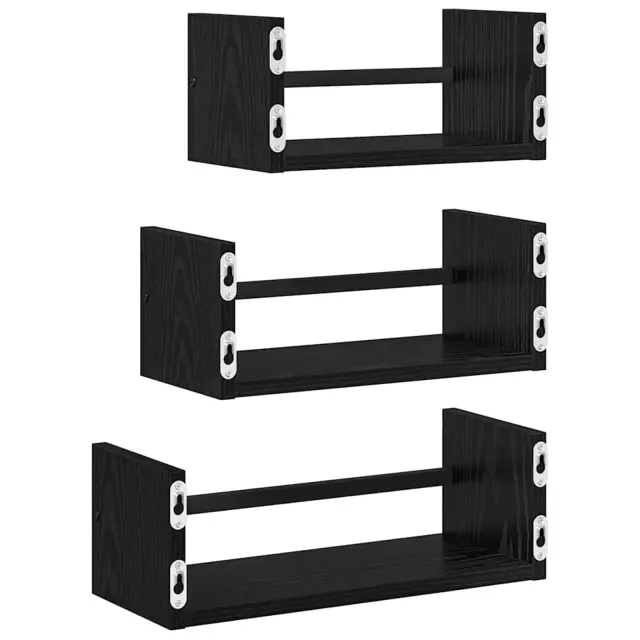 vidaXL Komplet stenskih polic s polico 3 pcs Črna Orehovina 40x16x14cm