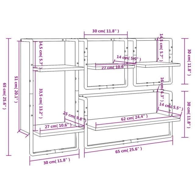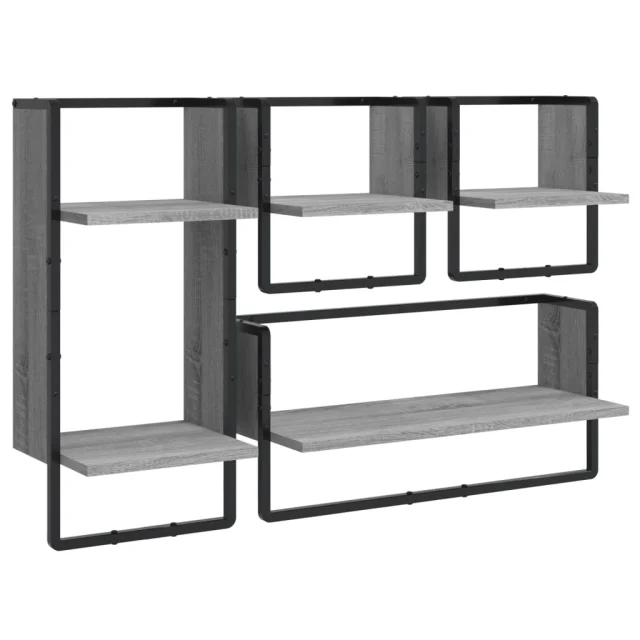 vidaXL Komplet stenskih polic s prečkami 4-delni siva sonoma inž. les
