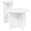 Sodobni komplet stranskih mizic združuje preprostost in funkcionalnost, kar ga dela popoln dodatek za sodobne bivalne prostore, kot so dnevne sobe ali spalnice. Njihova elegantna in minimalistična zasnova prijetno vadi modernost ter se lepo prilega različnim stilom, obenem pa omogoča postavitev svetilk, pijač ali dekorativnih predmetov. Predstavljajte si, kako lepo stoji ob vašem kavču ali postelji in ponuja prijetno in stilizirano površino za osebne stvari in dekor.