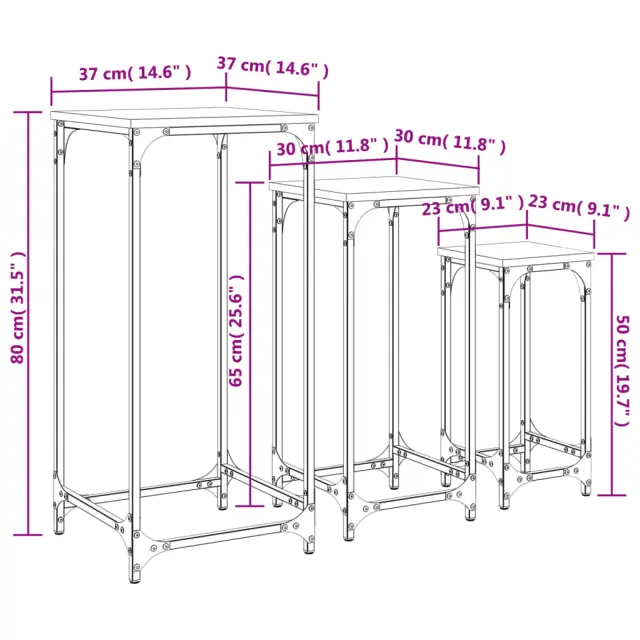 Te tri stranske mizice so pametna rešitev za majhne bivalne prostore ali prostore z omejenim prostorom. Ta komplet stranskih mizic z industrijskim dizajnom dodaja eleganten pridih vaši dnevni sobi, spalnici ali pisarni.