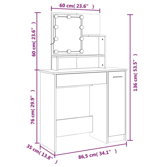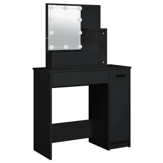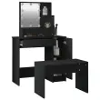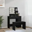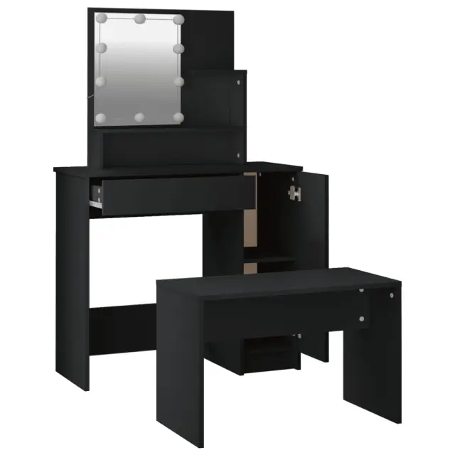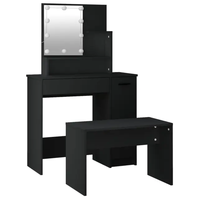 vidaXL Komplet toaletne mizice z LED lučkami črn inženirski les