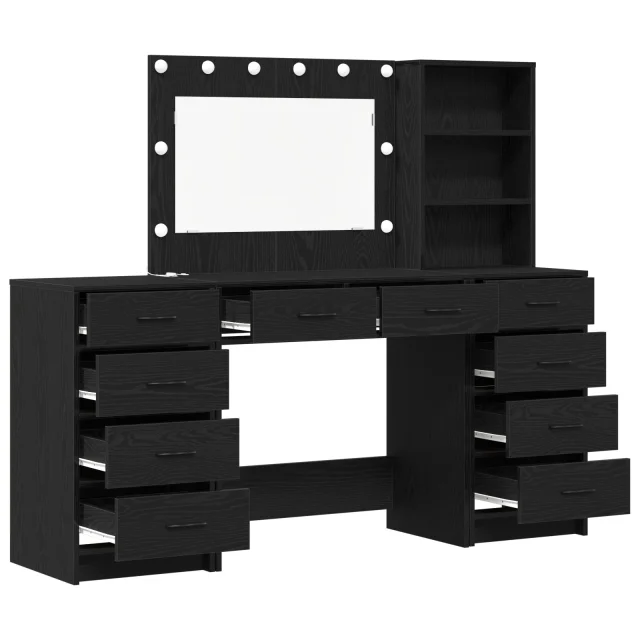 vidaXL Komplet toaletne mize 3 kosi z LED črnega inženirskega lesa