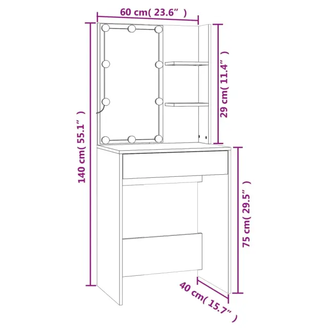 vidaXL Komplet toaletnih mizic z LED lučkami betonsko siv konstr. les
