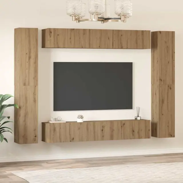 Ta set stenske omare za TV ponuja funkcionalno in stilsko rešitev za shranjevanje v modernih stanovanjih. Zasnovana za pritrditev na steno, omogoča, da izkoristite prostor na tleh, medtem ko hranite svoje zabavne potrebščine. Popolna za dnevne sobe, dopolnjuje sodobne notranjosti s svojimi preprostimi, čistimi linijami in minimalističnim oblikovanjem. Predstavljajte si, kako enostavno lahko organizirate svoje medijske naprave, knjige in dekorativne stvari, vse lepo razstavljene in pri roki.