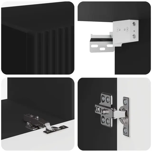 • Funkcije / Zasnova: Stenska namestitev ščiti prostor na tleh in doda sodoben pridih. Dodatni shranjevalni prostori skrijejo kable in druge stvari, ohranijo pa prostor urejen. Moderna zasnova omogoča, da je set funkcionalen in hkrati estetsko skladen.