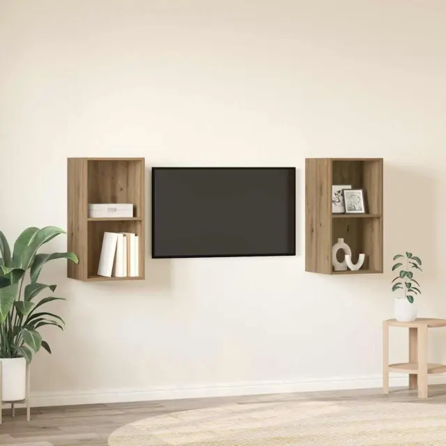 Ta stenska omara za TV dvigne estetiko tvoje dnevne sobe in optimizira prostor z odličnim dizajnom. Rustikalni stil izpostavi naravno lepoto trdega lesa, ki se odlično prikazuje v pravokotnem oblikovanju in bogatih lesnih tonih. Namenjena notranji uporabi, ta omara je funkcionalna rešitev za shranjevanje in super središče v tvoji zabavni coni. Ima dovolj prostora za tv in shranjevanje stvari za zabavo, kar je idealno za tiste, ki iščejo eleganten in urejen prostor.