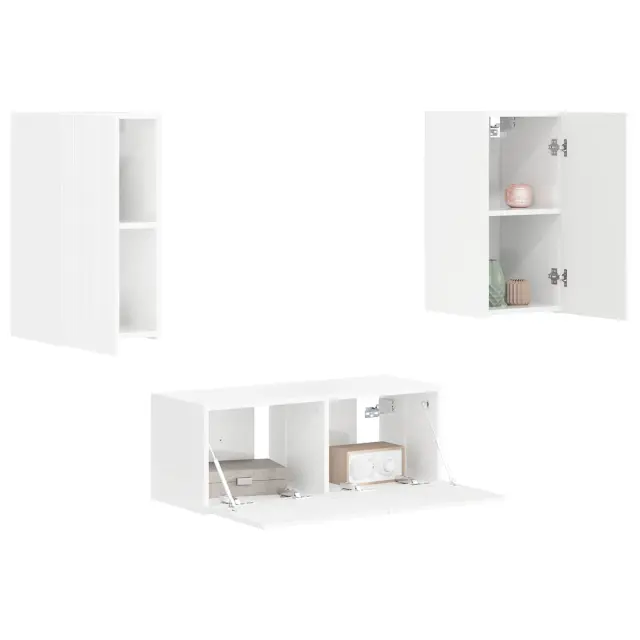 Ta moderni komplet TV omaric je eleganten in funkcionalen dodatek za vsak dom. S svojo elegantno minimalistično estetiko obsega dve omarici iz inženirskega lesa, ki se brez težav vključita v vaš prostor, bodisi za razstavljanje zabavne zbirke bodisi za praktične rešitve shranjevanja. Njegova zasnova v celoti ujame bistvo sodobnega življenja in se brez težav zlije v šik urbane postavitve ali prijetne družinske domove, kar izžareva občutek urejenosti in stila. Kombinacija materialov in zaključkov nudi funkcionalnost ter eleganco, kar ga dela idealnega za vse, ki cenijo kakovost in odlično oblikovanje.