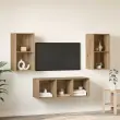 Ta set stenskih omaric za televizor ponuja moderno in prostorsko učinkovito rešitev za vašo dnevno sobo. Izdelan iz inženirskega lesa, njegov eleganten in sodoben dizajn se brez težav prilega vsakemu prostoru. Pravokotna oblika s minimalističnim videzom podpira vaš center za zabavo in dodaja malo sofisticiranosti vašemu prostoru. Z montažo omaric na steno maksimizirate talni prostor, medtem ko ohranjate dnevno sobo urejeno in brez nereda. Odličen je za shranjevanje medijev in daje moderen pečat.