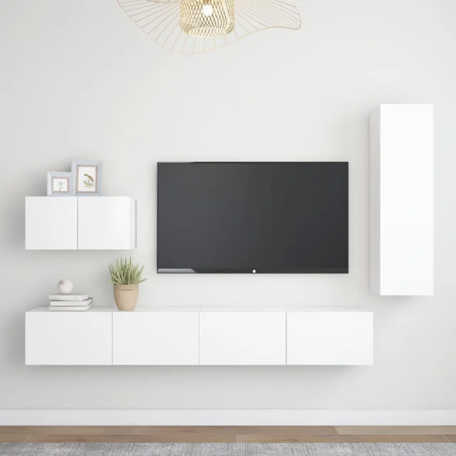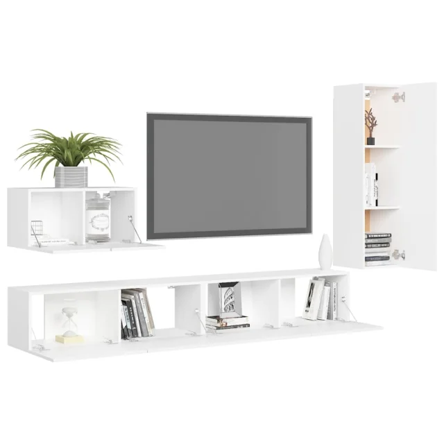 vidaXL Komplet TV omaric 4-delni bela iverna plošča