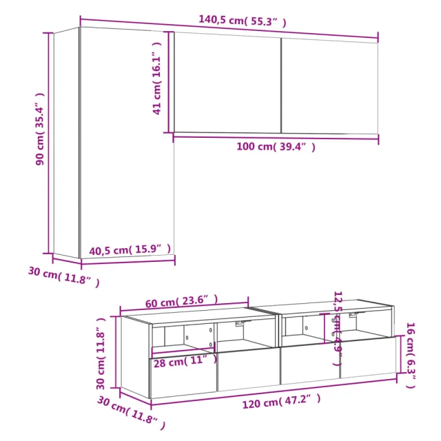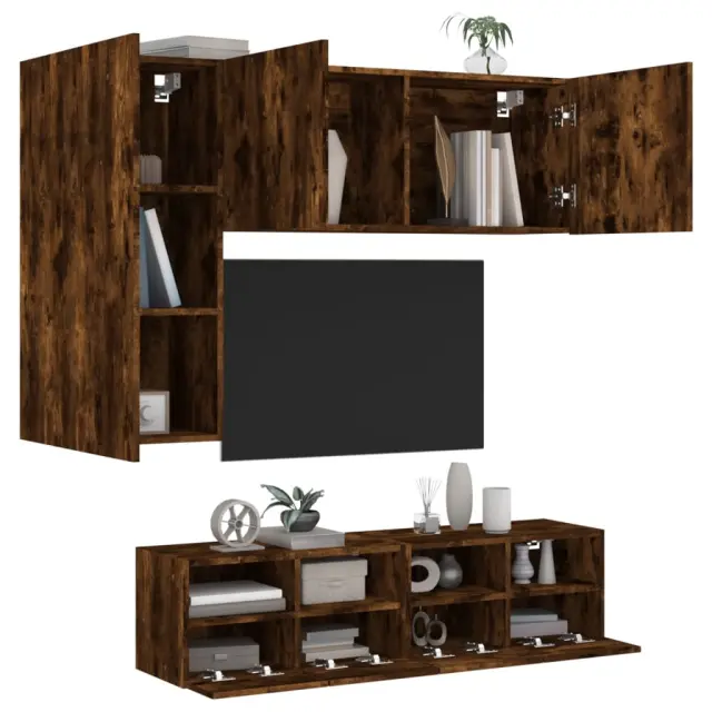 vidaXL Komplet TV omaric 4-delni dimljeni hrast inženirski les