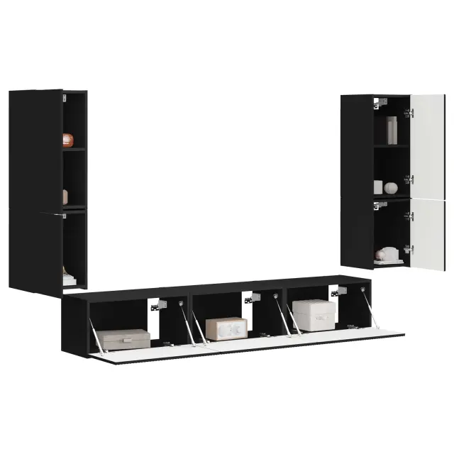 vidaXL Komplet TV omaric 4 pcs Črna Konstruiran les