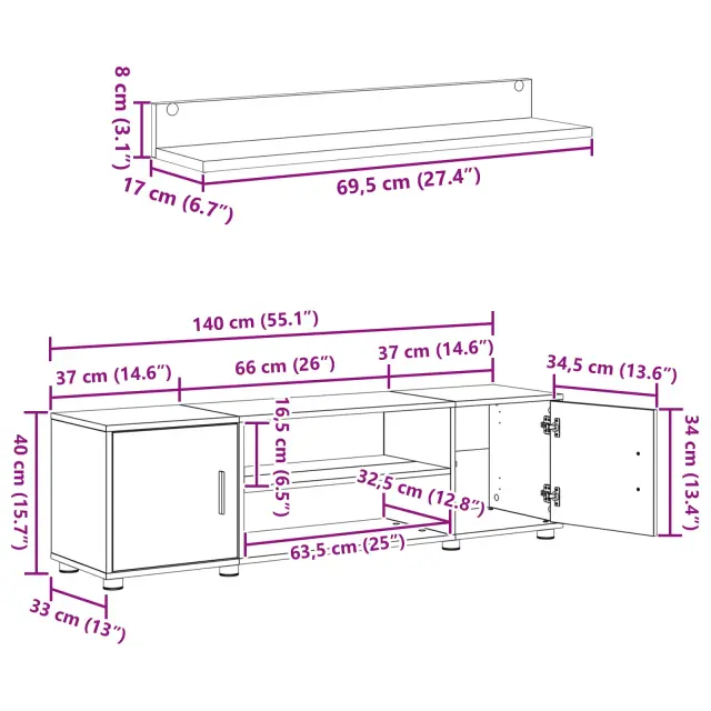 Ta komplet stenske omare za televizor se ponaša z modernim oblikovanjem, ki vključuje čiste linije in praktičnost. Popoln za notranje prostore, združuje stil in shranjevanje z inženirskim lesom, ki daje lepoto in kakovost. Zasnovan je tako, da maksimalno izkoristi prostor v dnevni sobi, komplet pa vsebuje različne komponente za vse vaše shranjevalne potrebe.