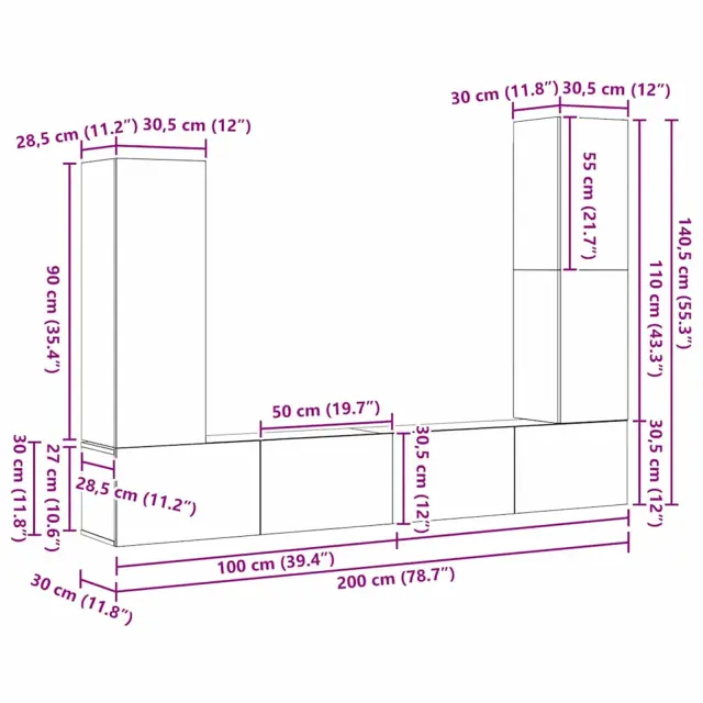vidaXL Komplet TV omaric 4 pcs Črni hrast 30.5 x 30 x 110 cm