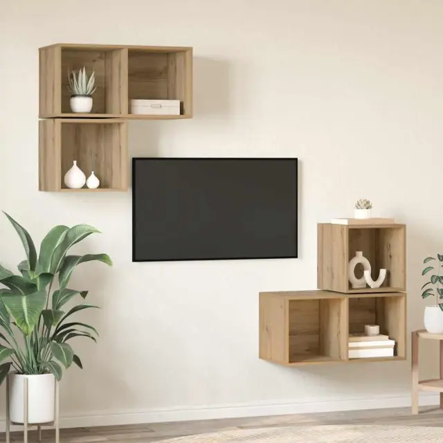 vidaXL Komplet TV omaric 4 pcs Umetni hrast Konstruiran les